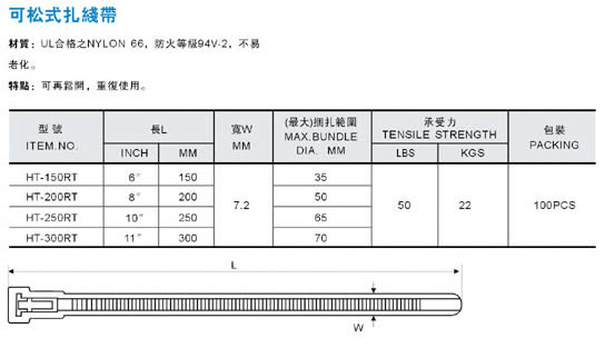 2、活扣尼龍扎帶又稱可松式扎帶可多次使用方便快捷。